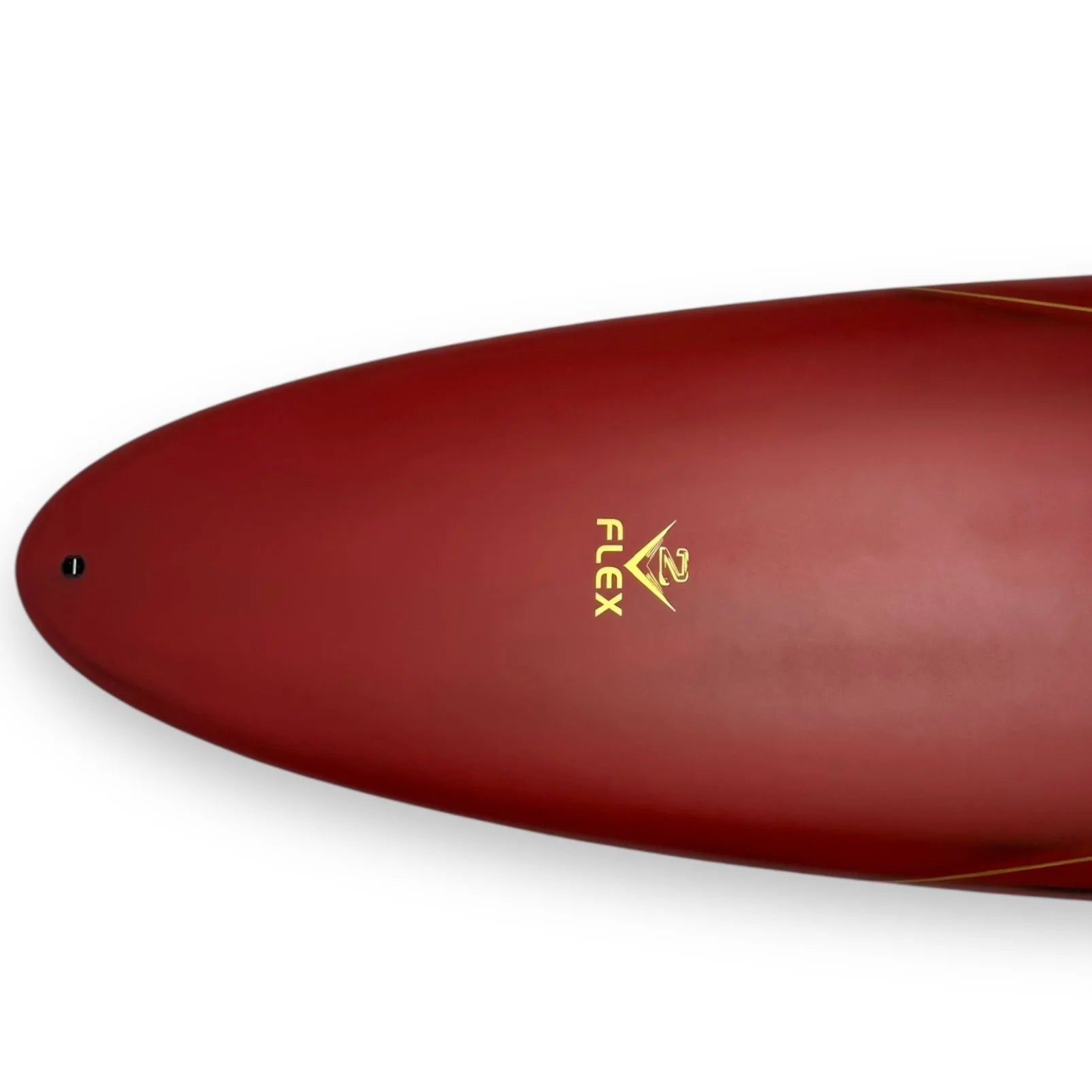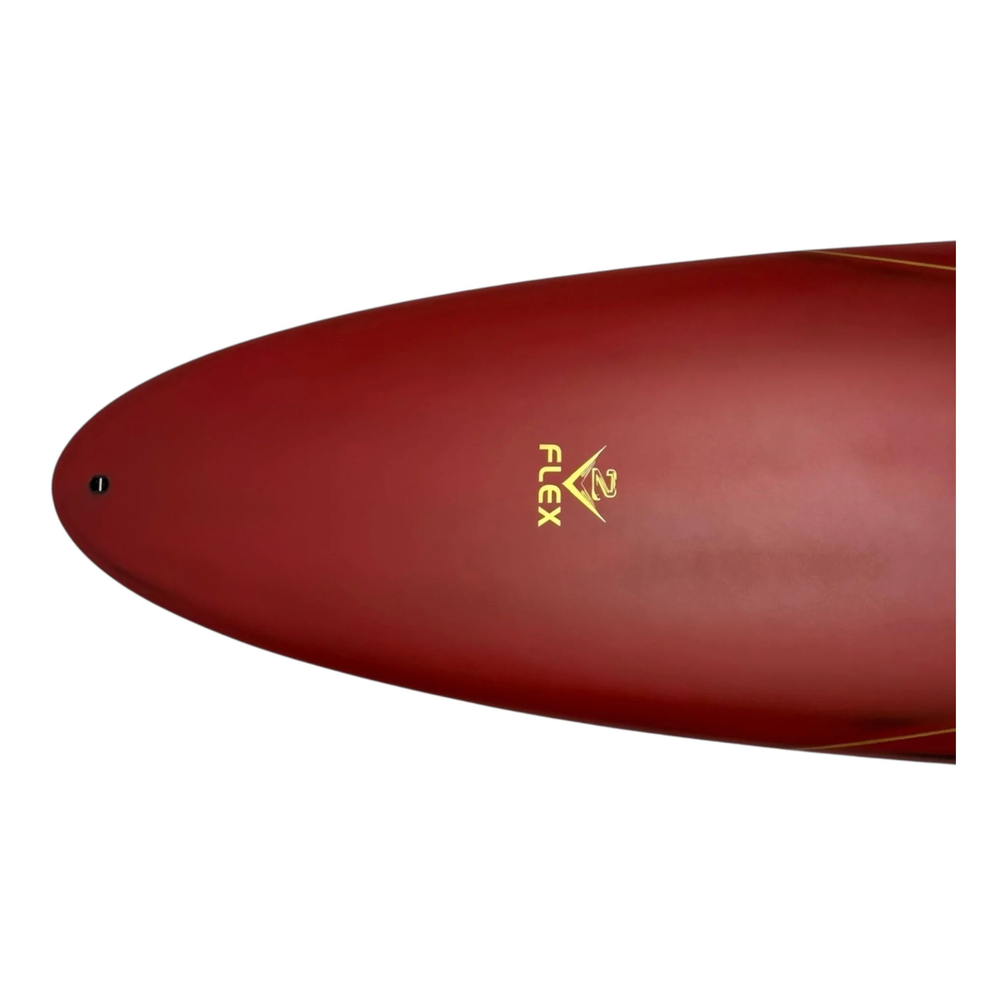 The continuous curve in the outline and bottom curve encourages smooth rail-to-rail transitions. A central planing area of accelerated rocker give the board extended trim and glide through a variety of conditions.